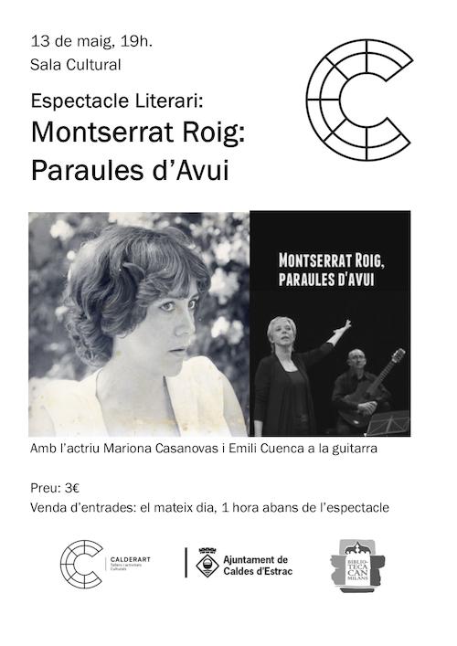 'Dins el Cicle d\'Arts Escèniques i Musicals de Caldes d\'Estrac -CALDERART- arriba un espectacle literari musicat al voltant dels textos de l\'escriptora Montserrat Roig, amb la reconeguda actriu Mariona Casanovas i el músic Emili Cuenca a la guitarra. L\'obra està basada en un recull d\'articles que va escriure Montserrat Roig a la seva columna diària al \"Diari Avui\" fins pocs dies abans de la seva mort. Un retrat de l\'ésser humà exposat amb tendresa i que deixa la reflexió oberta a l\'espectador. *Venda d\'entrades el mateix dia, 1 hora abns de l\'inici de l\'espectacle.'