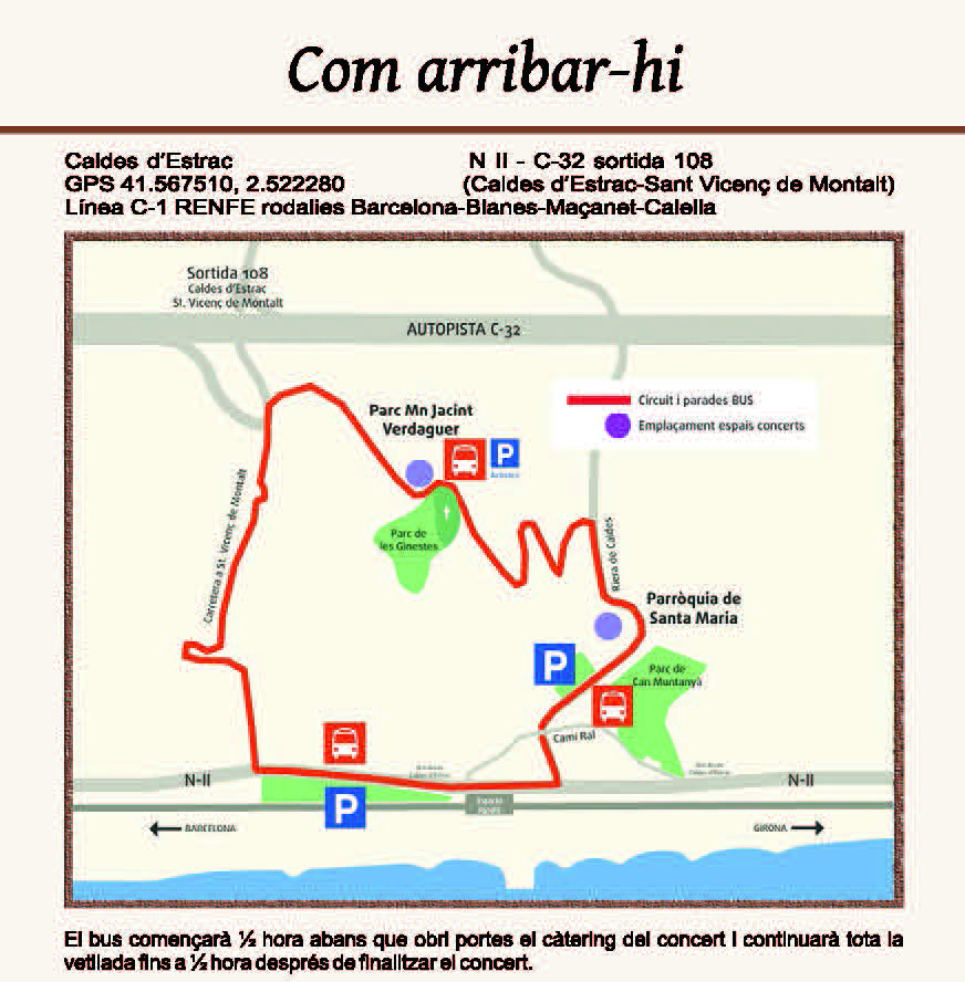El servei de bus començarà mitja hora avans de que comenci el catering i durarà fins a mitja hora després de que finalitzi el concert.