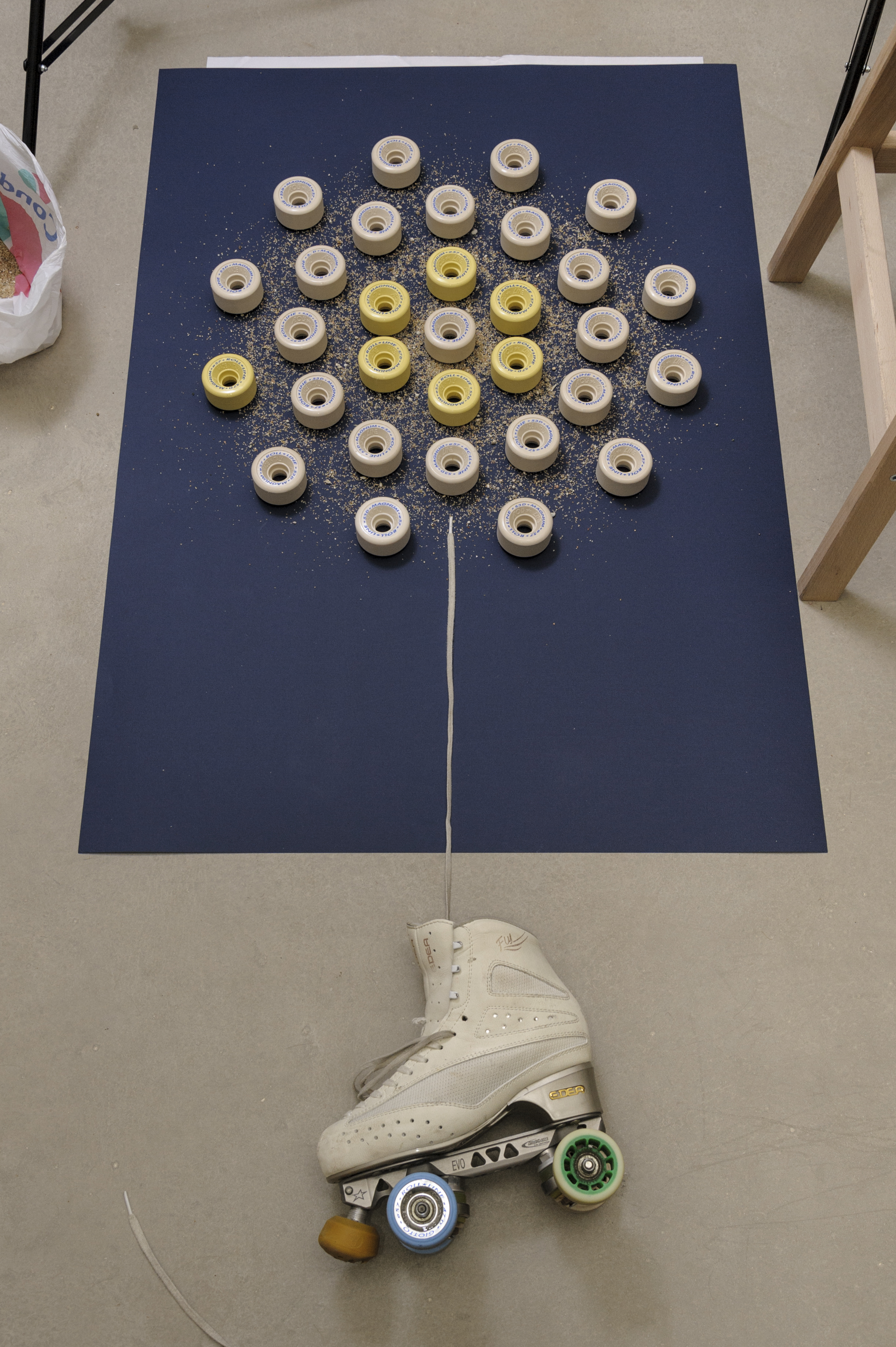 La imatge del cartell i el programa de la Festa Major de Caldes d’Estrac 2019 vol recollir aquesta il•lusió i encomanar-la arreu del municipi durant l'estiu. El disseny gràfic representa una icona típica de les celebracions mediterrànies: els focs artificials, construït amb elements del patinatge com són les rodes i els cordons de patins, combinats amb un element clau de Caldes: la sorra de la platja.