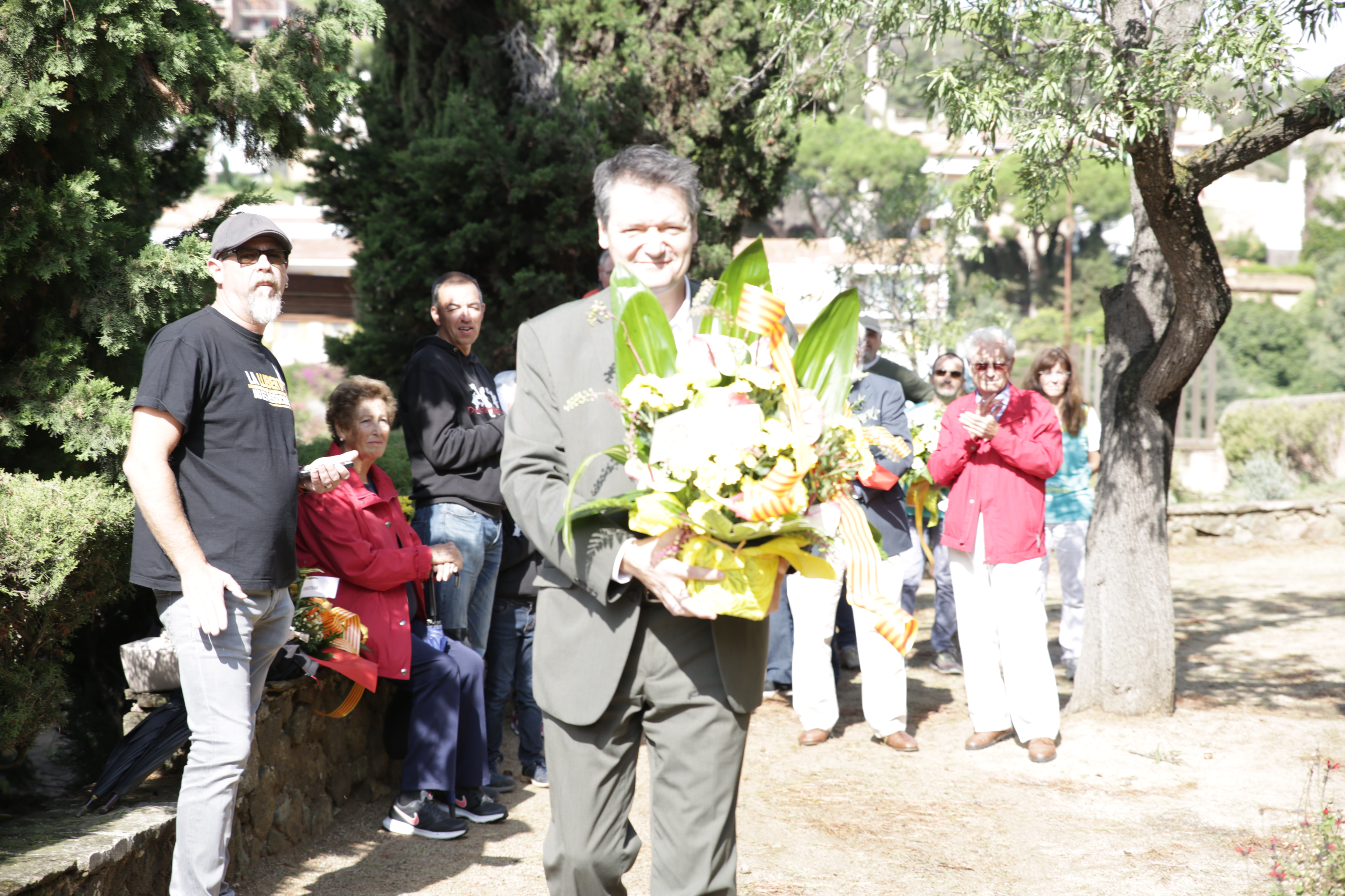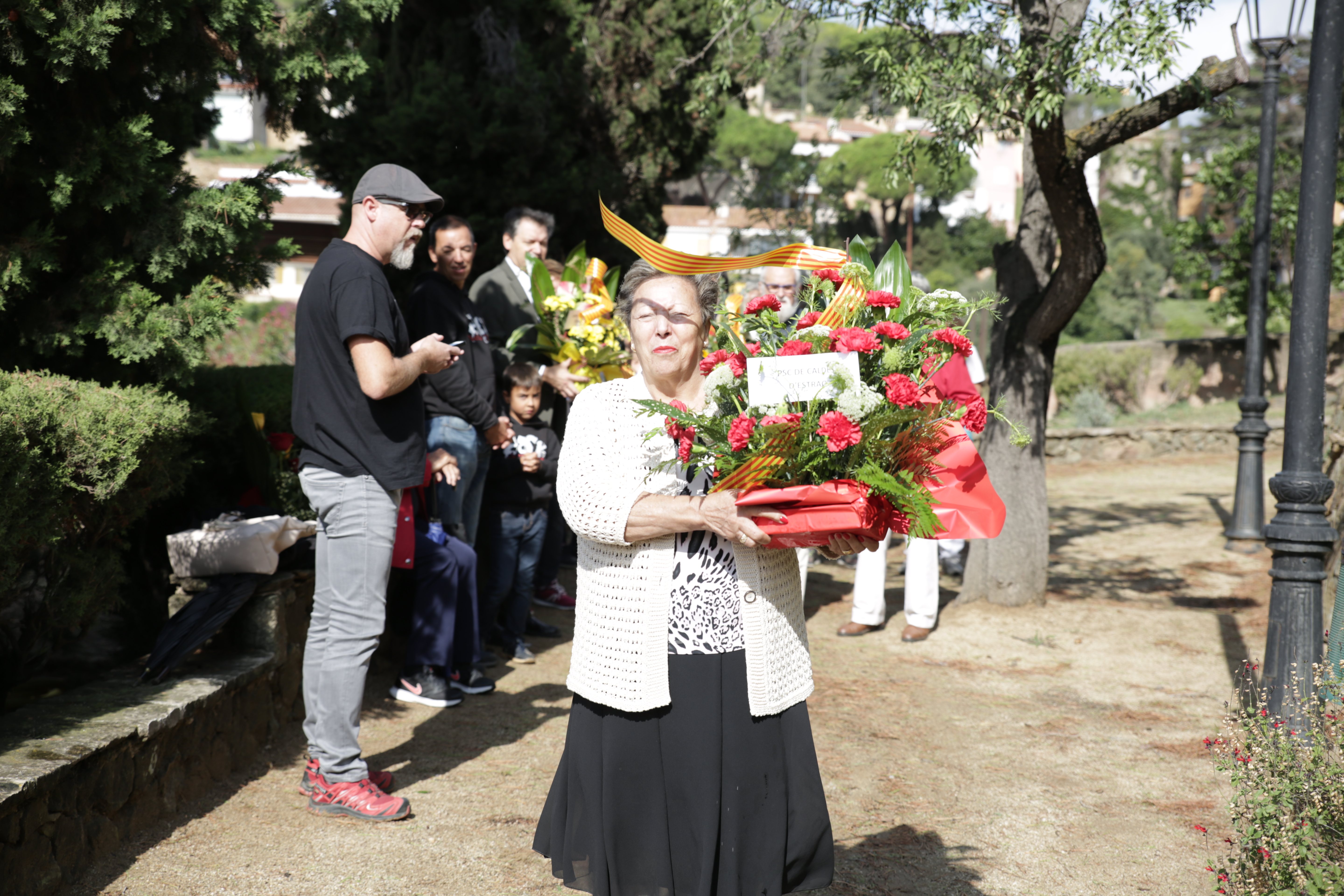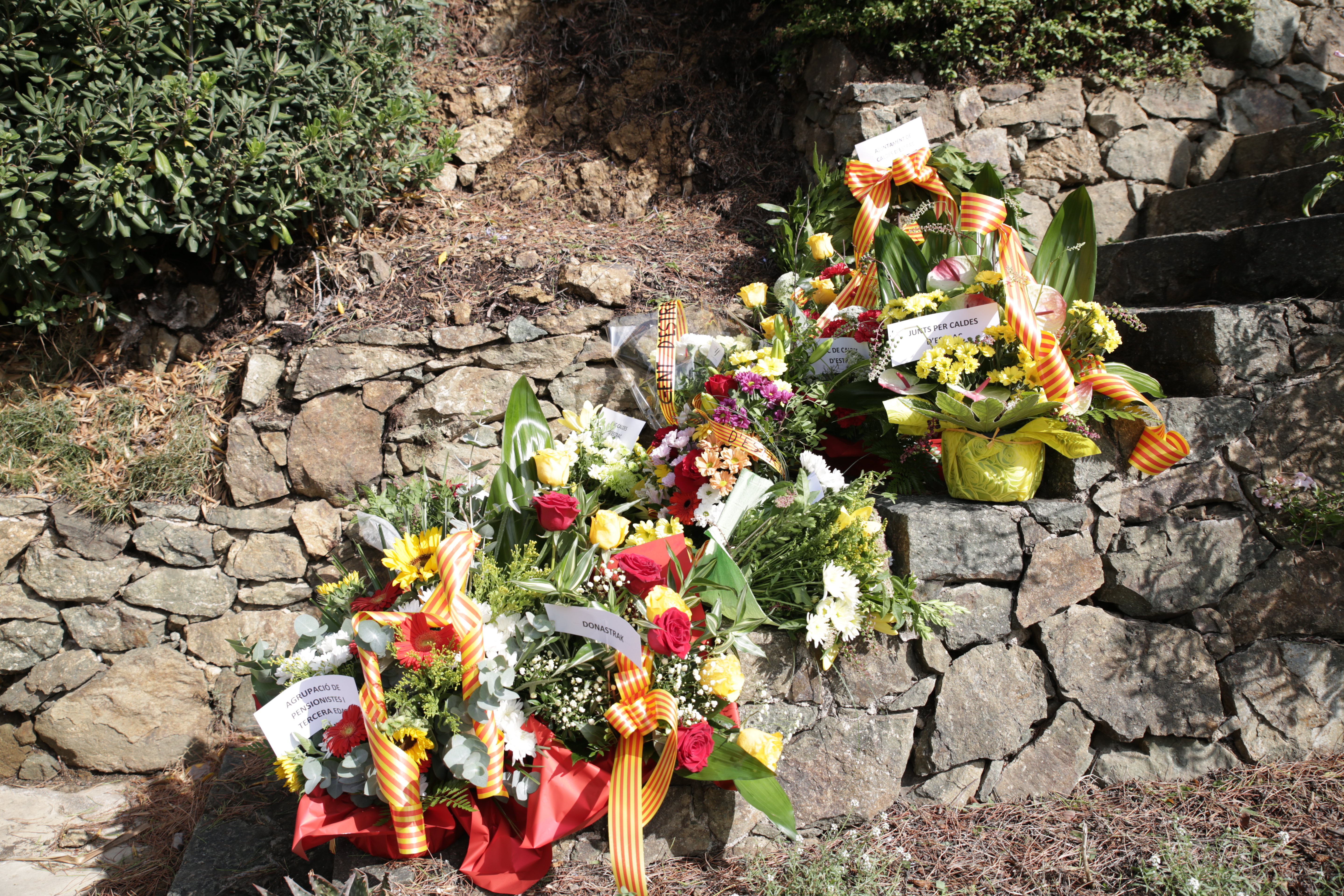 A continuació, les entitats locals van iniciar l’ofrena floral davant del mirador de l’Onze de Setembre. Aquest anyhan participat: Arrels Cultura, el Club de Patinatge Artístic, la Colla de Geganters i Grallers de Caldes d’Estrac, Caldes per la Independència – ANC, Associació Donastrak, la Colla de Diables d’Estrac, l’Associació de Pensionistes i Tercera Edat, els partits polítics municipals, ERC, PSC, JUNTS i GdE i el Consistori de Caldes.