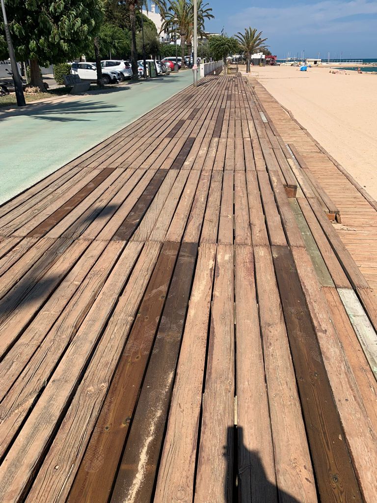 Tot i que cada any es fa un tractament de manteniment per a combatre la humitat, ja que la tarima es troba al costat del mar, enguany, l’Ajuntament de Caldes d’Estrac ha anat més enllà. Durant les darreres setmanes, s’ha portat a terme una primera actuació de millora de l’espai i s’han substituït els taulons que es trobaven més malmesos. Així mateix, el consistori caldenc ha anunciat que l’any vinent es realitzarà una segona intervenció per a reparar la part que falta. «Enguany, hem fet una actuació d’urgència, a causa del mal estat de la tarima i del moment en què hem disposat de partida pressupostària. L’equip que hi ha treballat ha intentat fer-ho al més ràpid possible per adequar la zona per al gaudí de veïns i visitants», afirma Salvà.