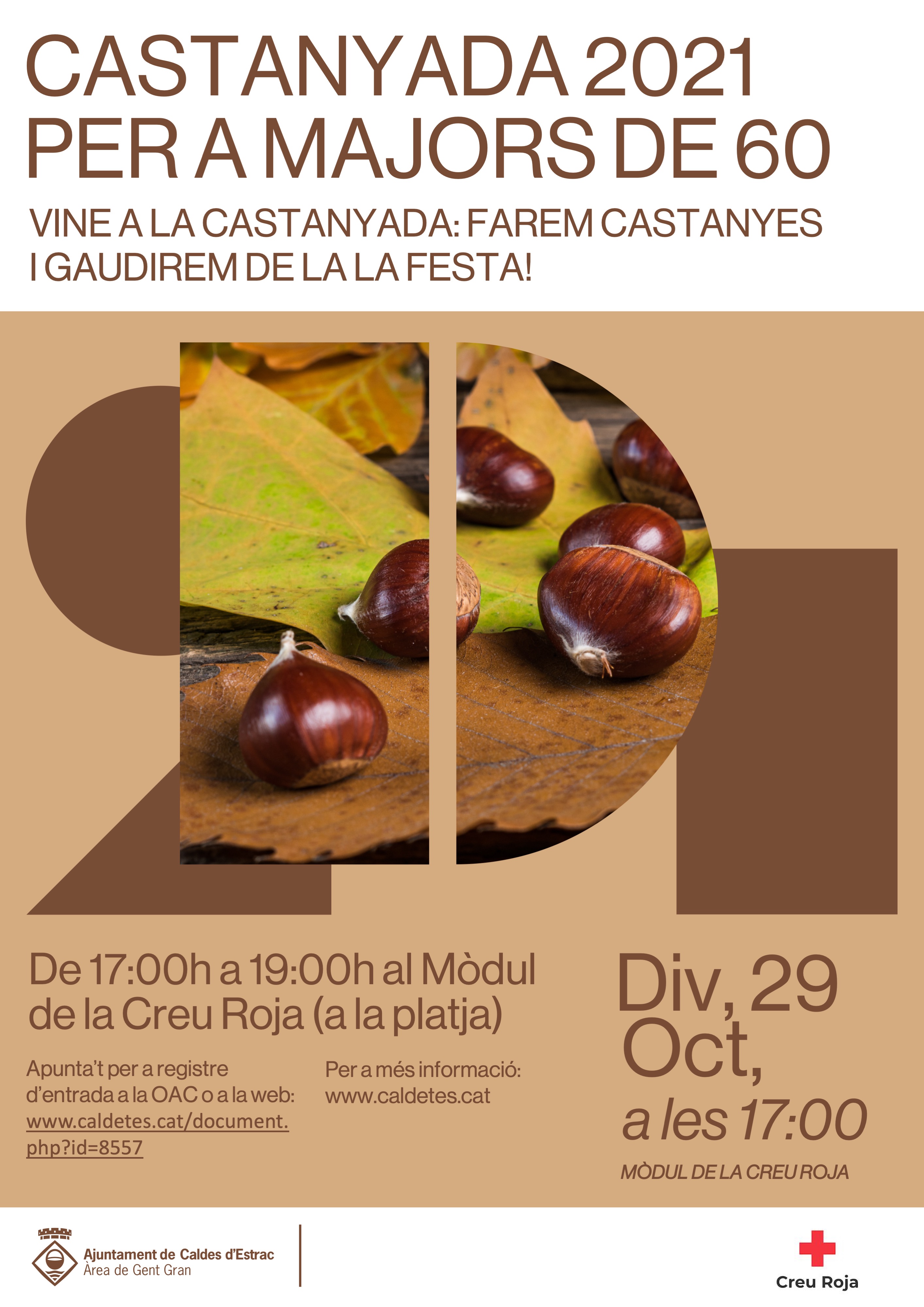 El pròxim divendres 29 d’octubre, l’Àrea de Gent Gran de l’Ajuntament de Caldes d’Estrac i la Creu Roja de Caldes d’Estrac impulsaran una Castanyada per a majors de 60 anys a la platja, a tocar de les instal·lacions de la Creu Roja al municipi. A partir de les 17 hores i fins a les 19 hores, es torraran castanyes, es menjaran panellets i es beurà una mica de vi dolç. L’objectiu és oferir un bonic moment d’esbarjo als avis i les àvies del poble. «La Castanyada és l’excusa perfecta per a compartir una nova estona amb la gent gran del municipi, saludar-los, escoltar-los i esbrinar quines són les seves inquietuds i necessitats. Des de l’Àrea de Gent Gran, organitzem activitats com aquesta també perquè ens serveixen com a termòmetre per a saber com està la gent gran de casa nostra, sobretot en termes de solitud, per exemple, ara que s’apropen els mesos d’hivern i Nadal», explica la regidora de Gent Gran, Laura Aloy.
