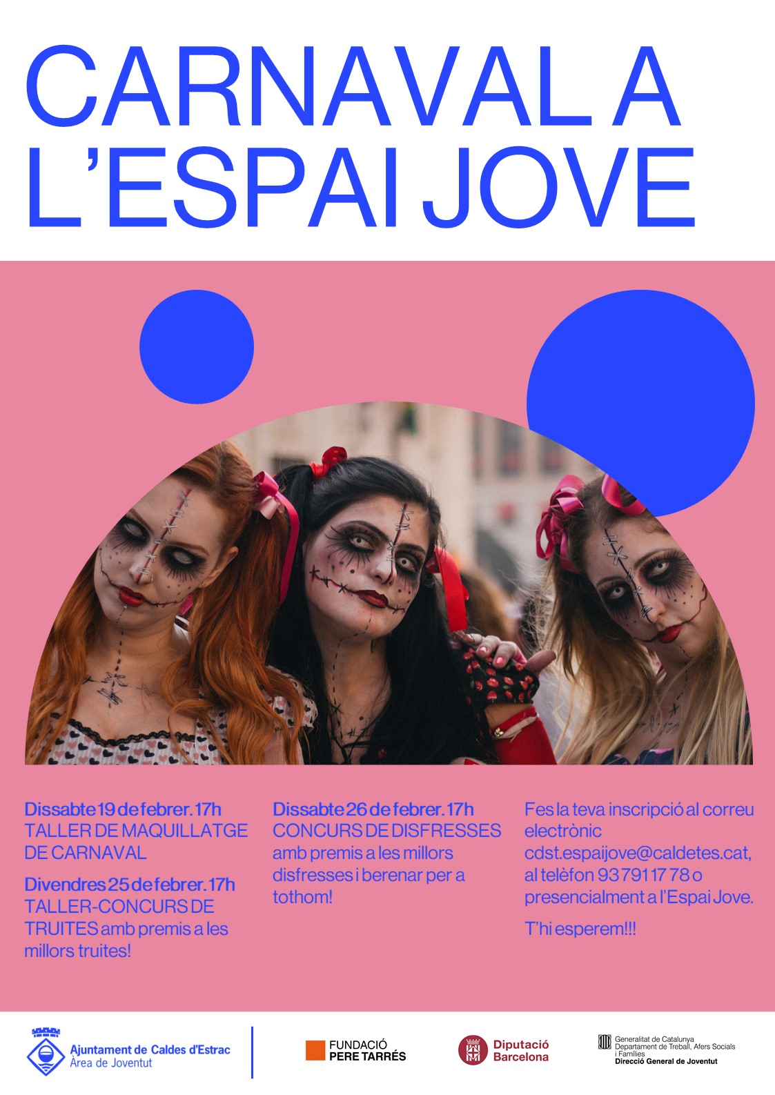 L’Espai Jove de Caldes d’Estrac ha presentat la programació especial amb motiu del Carnaval. Les dades epidemiològiques han millorat i enguany, l’equipament municipal proposa tres divertides activitats presencials. La primera, que es farà el dissabte 19 de febrer, a les 17 hores, serà un taller de maquillatge de Carnaval. La dinàmica permetrà a les persones participants aprendre tècniques per a fer unes creacions espectaculars i poder posar-les en pràctica el dia del concurs de disfresses de Carnaval.